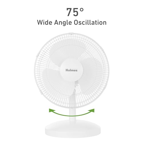 HOLMES 12"" Table Fan 75° Oscillation 3 Speeds 15° Adjustabl...