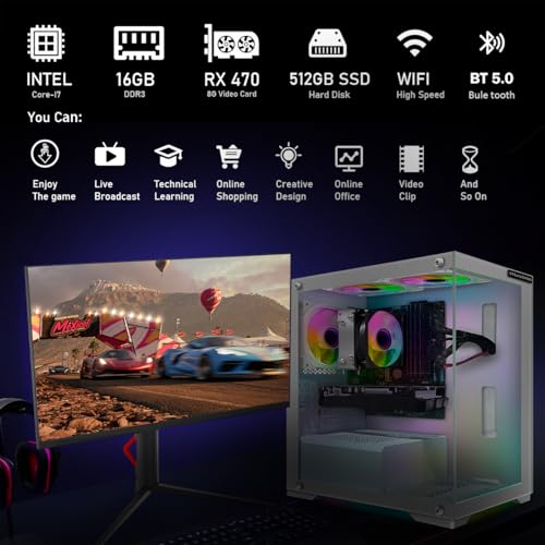 STGAubron Gaming Desktop PC Radeon RX 550 4G GDDR5 Intel i7 Xeon E5 3.0GHz 16G Ram 512G SSD 600M WiFi BT 5.0 RGB Fan x 3 Windows 10 Home