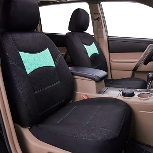 CAR PASS 2Pcs Premium Leather Car Seat Covers for Bottom Front Seats Waterproof Padded Seat Covers for Cars Universal Fit for Most Cars Sedan Truck SUV(Beige/Beige Line)