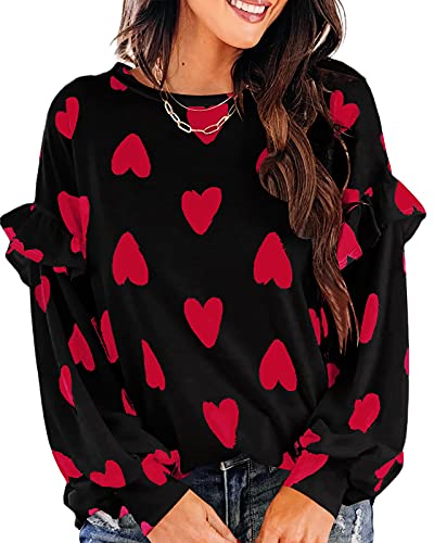 Ivay Womens Heart Printed Long Sleeve Tops Tee Shirts (X-Lar...