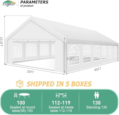 COBIZI 20x40FT Party Tent Heavy Duty Outdoor Gazebo White Ev...