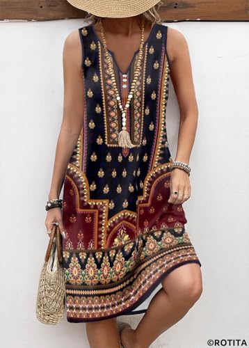 V-Neck Floral Printed Summer A-Line Elegant Dresses Womens V...