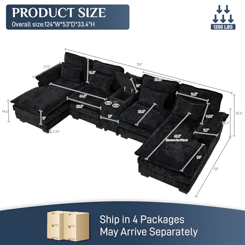 TEKAMON 128\" Modular Sofa Couch with Large Seats Storage Chenille Sofa, Modern Comfy 4-Seater Couch for Living Room Office Apart W/Deep Seat Wide Armrest Side Pockets USB Port Removable Cover Price in USA