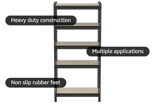 REIBII 5-Tier Storage Shelves Boltless Assembly Metal Shelvi...