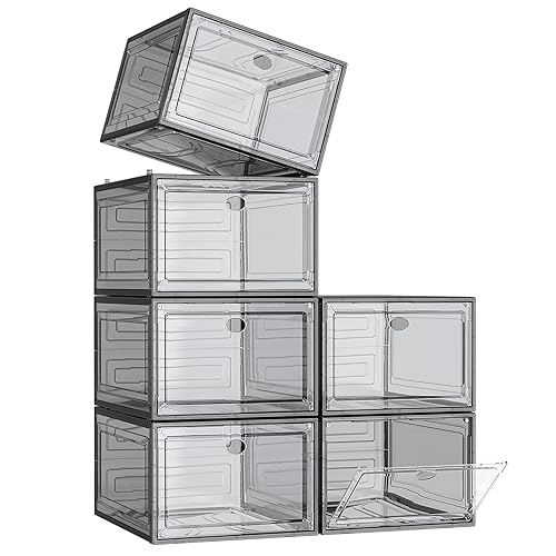 12 Pack Clear Shoe Storage Organizer with Magnetic Door Stac...