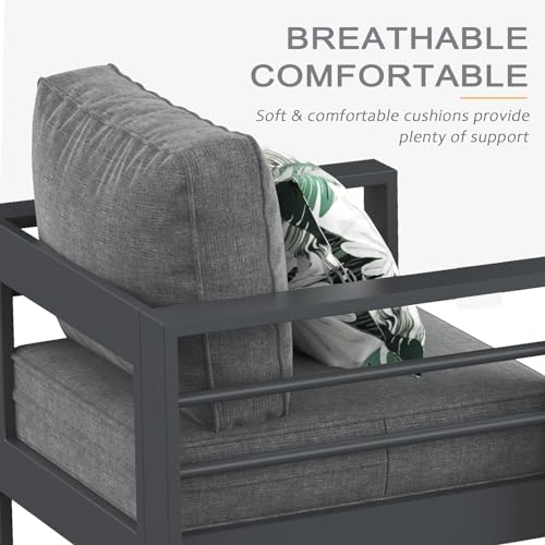 SERWALL Outdoor 7 Pieces Sectional Sofa Set Grey Frame with Grey Cushion