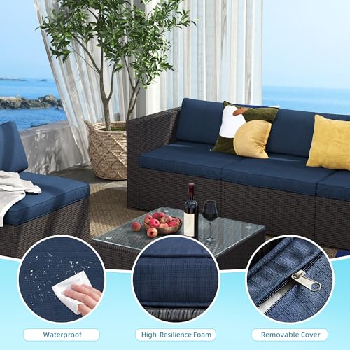 SERWALL HDPE Outdoor Patio Furniture Set 7-Piece Outdoor Sectional Patio Conversation Set All Weather Outdoor Couch Set Patio Sofa Set for Deck Lawn Grey Frame with Khaki Cushion Price in USA