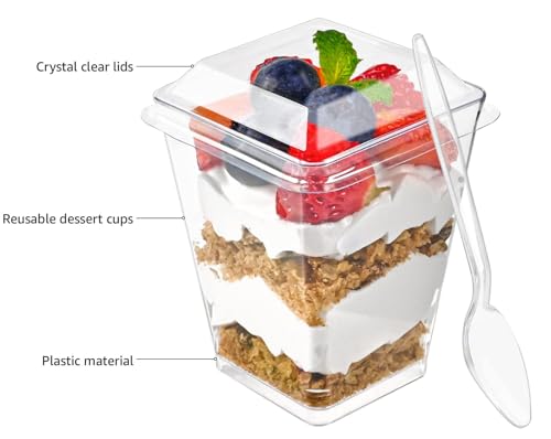 Zezzxu 50 Pack 5 oz Dessert Cups with Lids and Spoons Parfai...
