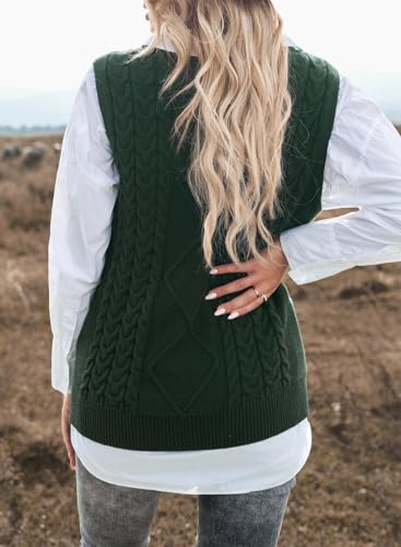 EVALESS Womens Oversized Sweater Vest V Neck Green Sleeveles...
