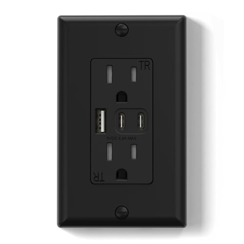 ELEGRP USB Outlets 15 Amp Wall Outlet with 3 USB Ports Dual USB C Ports Outlets TR Tamper-Resistant USB Outlets Receptacles Wall Plate Included UL/CUL Listed 1 Pack Black AUR01-1542CCA-BL Price in USA