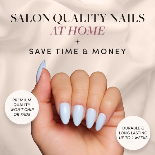 Glamnetic Press On Nails - Blueberry Milk | Solid Opaque Light Blue Short Almond Nails Reusable | 15 Sizes - 30 Nail Kit Price in USA