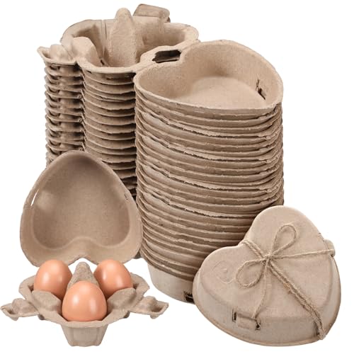 FoldTier 3 Egg Cartons 3 Count Egg Crate Heart Shaped Paper Pulp Egg Container with Jute Twine Reusable Egg Baskets Holder for Backyard Egg Storage Chicken Lover valentine Gifts (80 Pcs) Price in USA