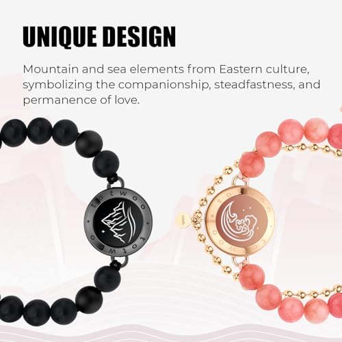 TOTWOO Long Distance Touch Bracelets| Mountain&Sea Touch Bracelets with Beaded Black Agate and Pink Persian Jade |Long Distance Unique Relationship Gifts for Girlfriend Black&Rose Gold Price in USA