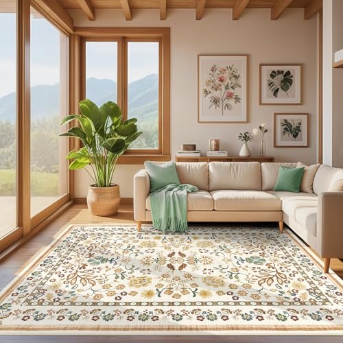 ARIA-14-7.5x9.5 Luria Rugs Luria Rugs Machine Washable 7'6\" x 9'6\" Non-Slip Large Area Rug for Living Room Bedroom Dining Room - Oushak Vintage Aria Collection - Beige/Grey Price in USA