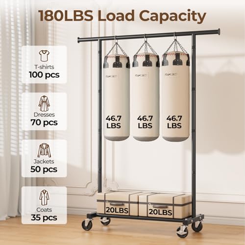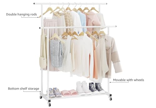 Simple Trending Standard Clothes Clothing Garment Rack with Storage Shelves Rolling Clothes Organizer on Wheels for Hanging Clothes Black ST57776-B Price in USA
