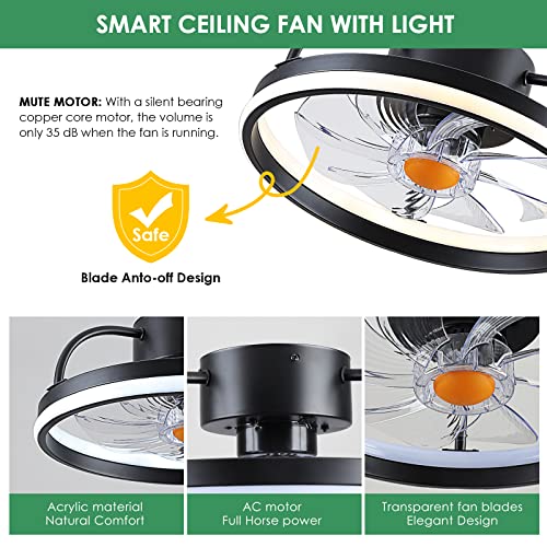 Mpayel Ceiling Fans with Lights and Remote/APP Control 46\" Flush Mount Ceiling Fan Dimmable DC Motor,Low Profile Ceiling Fan for Bedroom Living Room Brushed Nickel