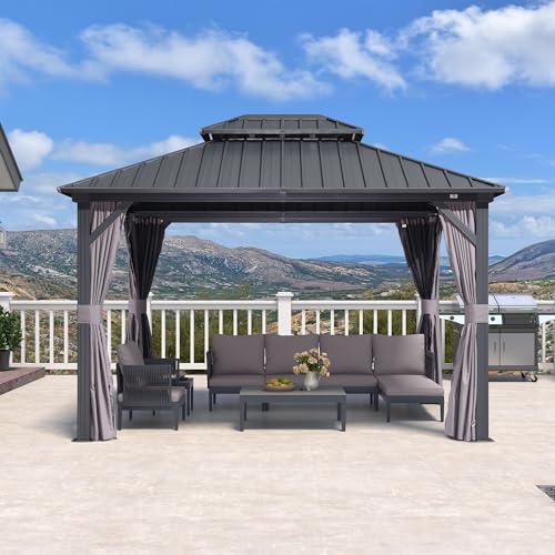 ECOTOUGE 12x12 ft Pop Up Canopy Tent Outdoor Patio Instant Gazebo Tent with Waterproof and UV Resistant Portable Party Canopies with 4 Removable Sidewalls and Roller Bag (Brown)