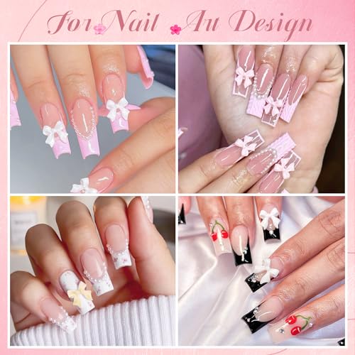 3D Nail Charms and Gems Set 6 with Rhinestone Glue 75PCS Chunky Coquette Pink & White Bow Nail Charms + Kawaii Cute 3D Flowers for Nails + Clear & AB Glass Crystals + Flat Pearls for Y2K Nail Decor Price in USA