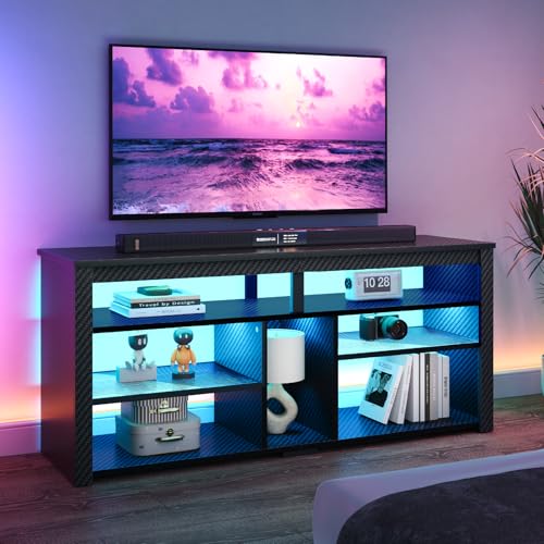 Bestier 42 L Gaming Desk Computer Desk with Power Outlets LED Lights Reversible Corner Desk with 4-Tier Shelves Cup Holder & Hook for Home Office Carbon Fiber Pink H103710