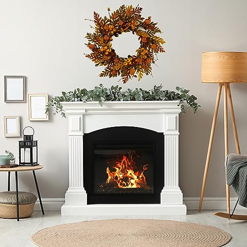 【Lifelike】: This artificial white daisy wreath is made of premium plastic and silk. The base is durable natural grapevine full of yellow daisy green eucalyptus leaves jasmine lavender clusters of small berries and other wild flowers. It keeps blooming and never fade. But to prevent discoloration please try to avoid being in a humid environment for a long time.
