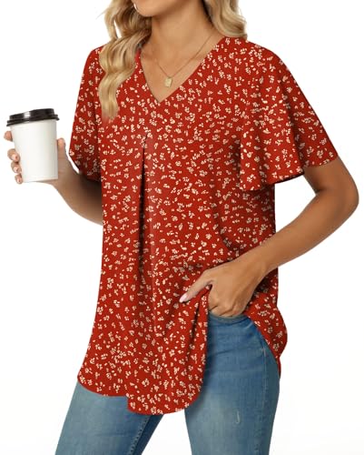 Anyally Women's Summer Dressy Chiffon Blouses Plus Size V Ne...