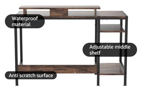 GZSHIYITECH 47”Gaming Desk/Computer Desk,Home Office Desk with Monitor Stand Writing Desk for 2 Monitors Desk Adjustable Storage Space Firm and Practical Small Desk,Modern Design Corner Desk(Black