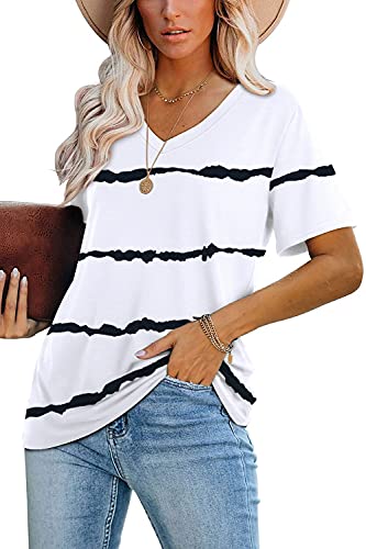 Lunivop Womens Tee Shirts V Neck Short Sleeve Tops Striped S...