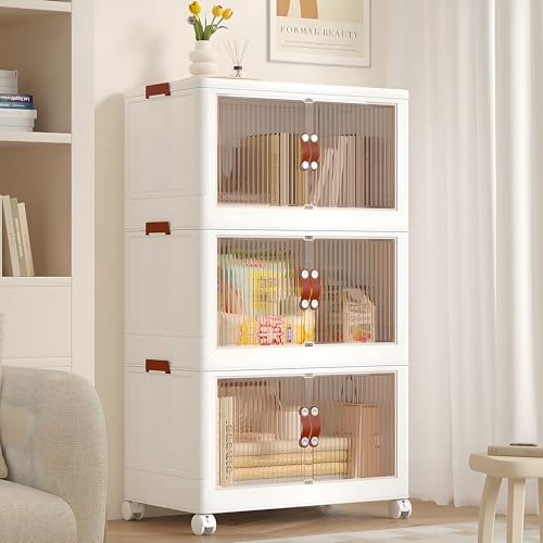 VECELO Cabinet 3-Tier Display Shelves with Protection Door Metal Frame Storage Shelf Organizer for Small Space Living Room Kitchen Bathroom Corner Table Brown Price in USA