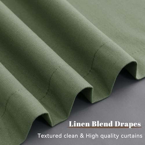 Guken White Linen Blackout Curtains 126 Inch Length 2 Panels Set for Living Room Bedroom Back Tab Thermal Insulated 100% Black Out Linen Drapes Room Darkening Window Curtains 126 Inches Long White