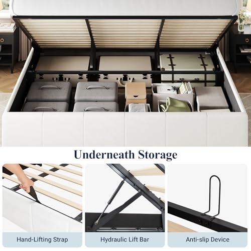 Queen Upholstered Bed Frame with Button Tufted Headboard - Modern Platform Bed with Diamond Design - Mattress Foundation - Wooden Slats Support - No Box Spring Required - Easy Assembly - Black