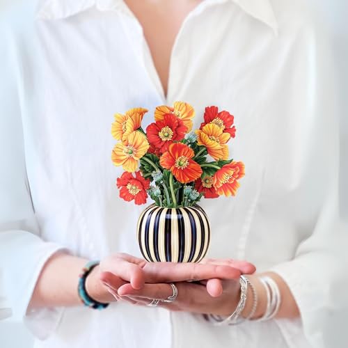 Freshcut Paper's pop-up floral bouquets consist of whimsical and breathtaking blooms that are wilt proof and crafted to last a lifetime. Our ever-growing collection of forever flowers seasonal wreaths unique and modern gardens and home decor are made from recyclable materials and come with a coordinating blank greeting card and ready-to-mail envelope. Easy to pop open and display our vibrant collections make it easy to send a smile to those you love. Paper flower bouquet can also be an everyday flower that lasts something to add color to a room or a smile to someone's face. It's never been easier to send a smile to those you love. No matter the occasion we have a whimsical and wilt-proof arrangement sure to delight.