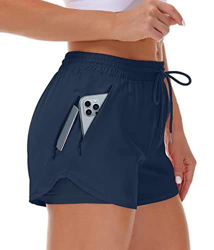 Mancreda Women's Running Shorts with Liner 3 Zipper Pockets ...