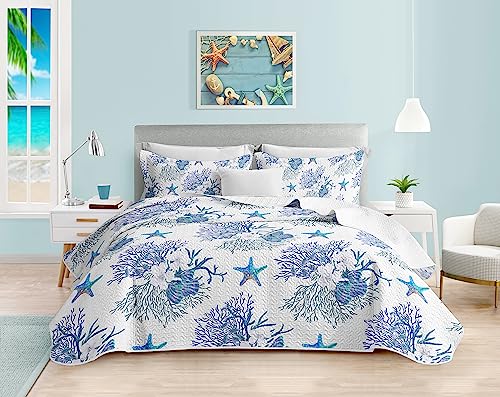 Coastal Bedding King Size Coastal Quilt with 2 Shams Nautica...