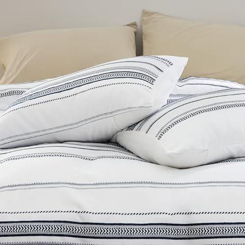Specifications & Details: The Bedsure Boho Duvet Cover measures 104" x 90", making it suitable for king-size beds. It is available in a White&Navy striped color scheme, which adds a touch of elegance to any bedroom. The duvet cover is made using jacquard weaving techniques, ensuring a high level of quality and attention to detail.