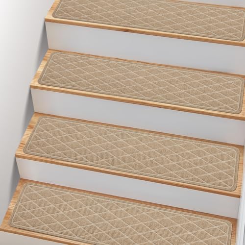 PATTENGO Non Slip Stair Treads for Wooden Steps 15 Pack 8\"\" X 30\"\" Stairs Carpet Treads Indoor with Reusable Peel and Stick Adhesive for Kids Elders and Pets Polyester TPR Backing Brown