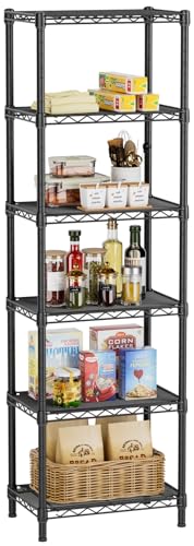 Furnulem 6 Tier Corner Shelf with LED Light 67.5” Tall Standing Shelf Organizer Black Narrow Bookshelf with Storage Rack for Wall Corner Living Room Bedroom Metal Frame Wood Display Shelf Price in USA
