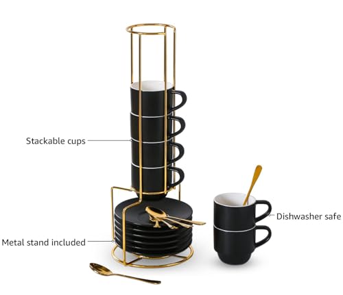Lareina Porcelain Stackable Espresso Cups with Saucers Spoon...