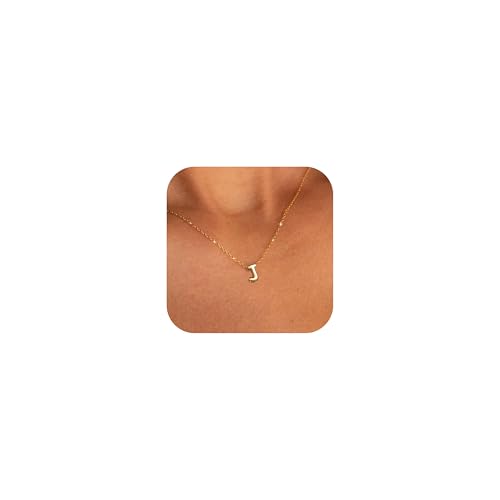 CUEZIY Bubble Letter Necklace Gold Initial Necklaces for Wom...