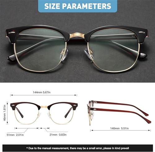 AOMASTE Blue Light Blocking Glasses Vintage Half Frame UV Clear Lens Anti Eyestrain Computer Gaming Glasses for Women Men(P51) Large Price in USA