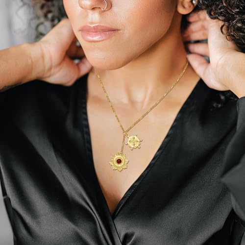 BONJOULRY Chunky Gold Flower Sun Coin Charm Pendant Necklace...