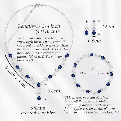 GZWHD Royal Blue Sapphire Jewelry Set for Women Necklace Ear...