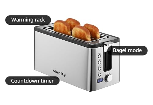 Introducing the bella 2-Slice Slim Toaster where innovative design meets ultimate functionality. With a unique 10-inch long slot this bagel toaster effortlessly accommodates two slices of square bread side by side or a variety of artisanal breads bagels baguettes and thick Texas-style toast. The wide toasting space and slim 3.58\" profile make it a perfect fit for any kitchen combining versatility with space-saving efficiency. Control your toast exactly the way you like it with the 6-setting shade selector plus Reheat and Cancel functions for precise browning. The high lift lever ensures easy access to smaller items like English muffins while the auto-centering guides keep everything perfectly aligned for even toasting every time. Cleaning this toastie maker is a breeze with the removable slide-out crumb tray and the anti-jam and auto shut off features provide added safety and peace of mind. Powered by a 900-watt toasting system this toaster delivers quick and consistent