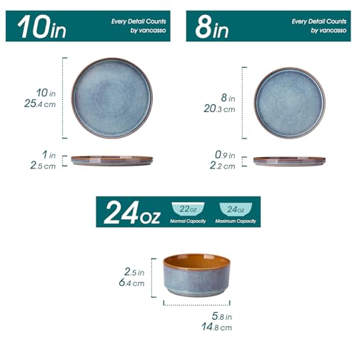 vancasso Bonita Blue Dinnerware Sets Plates and Bowls Set fo...