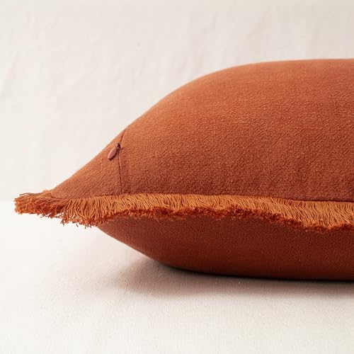 Product Overview: Elevate your living room decor with the MIULEE Set of 2 Fall Linen Throw Pillow Covers, a perfect blend of rustic charm and bohemian flair. As a leading brand in the HOME > DECORATIVE PILLOW COVER category, MIULEE brings you a unique farmhouse style design that will complement your sofa and add a touch of warmth to your space. Whether you're looking to update your home for the fall season or simply want to add a pop of color, these Rust Pillow Covers with Fringe are an excellent choice.