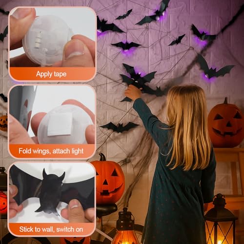 Halloween 3D Lighted Bats 2025 New Halloween Bats Wall Decor...
