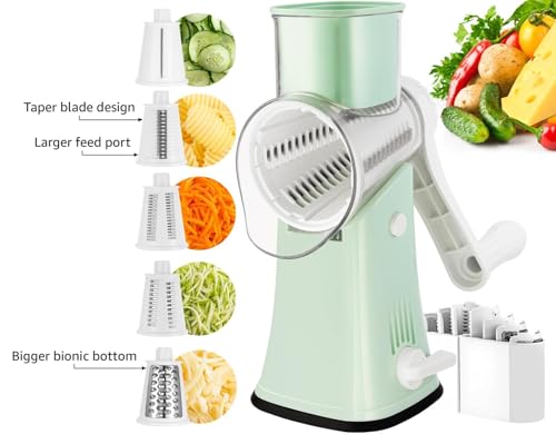 5 in 1 Rotary Cheese Grater with Handle [5 Interchangeable S...