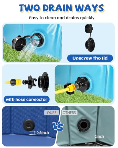 QPAU Inflatable Swimming Pool Full-Sized Blow Up Pool with Seats and Backrests Kiddie Pool for Outdoor & Backyard for Family Summer Time Fun Jelly Blue
