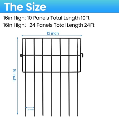 Decorative Animal Barrier Dog Garden Fence 12 Pack - 30 in(H) x 23.6 ft(L) No Dig Outdoor Decorative Fence Rustproof Metal Wire Panel Border Rustproof Metal Wire Section Edging Fencing Panel Black