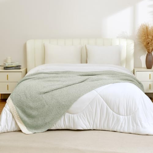 Snuggle Sac Sage Green Throw Blanket 50\"x70\" Super Soft Warm Microfiber Blankets Cozy Knit Fuzzy Lightweight Oversized Throws for Couch Sofa Bed Camping Picnic (Sage Green 50x70 inches Price in USA