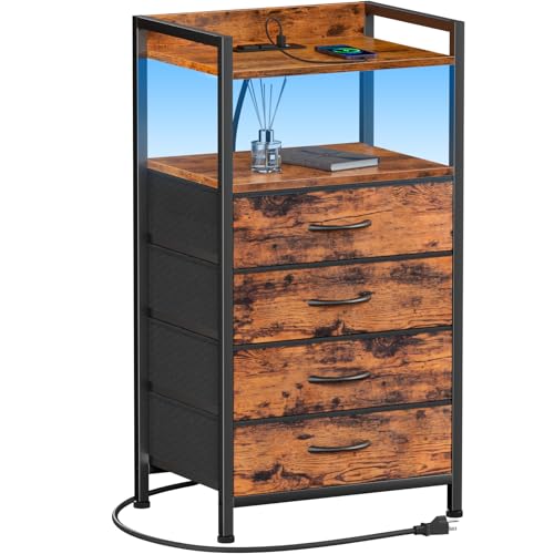Furnulem Retro 5 Drawers Dresser Tall Dresser for Bedroom Closet Hallway Nursery Fabric Storage Tower Dresser Organizer Vertical Nightstand Side Table Furniture Steel Frame Wood Top Price in USA